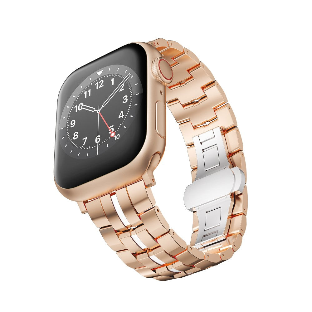 Zinc Alloy Strap for Apple Watch Ultra 2 Ultra 49mm / Series 9 8 7 45mm / 6 5 4 SE (2022) SE (2023) SE 44mm / 3 2 1 42mm Wrist Band - Rose Gold+White